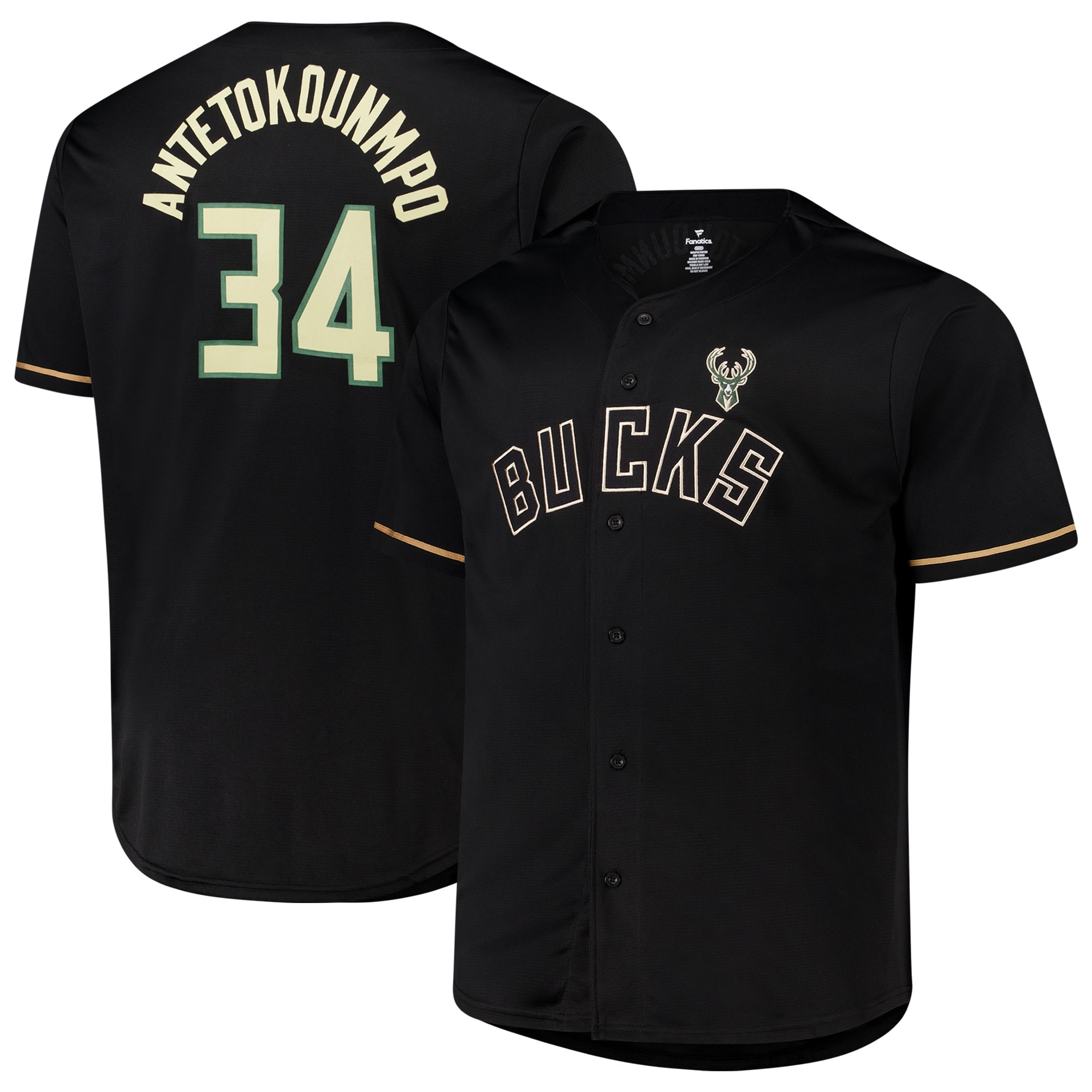 Giannis Antetokounmpo Milwaukee Bucks Profile Big & Tall Name & Number Button-Up Jersey – Black